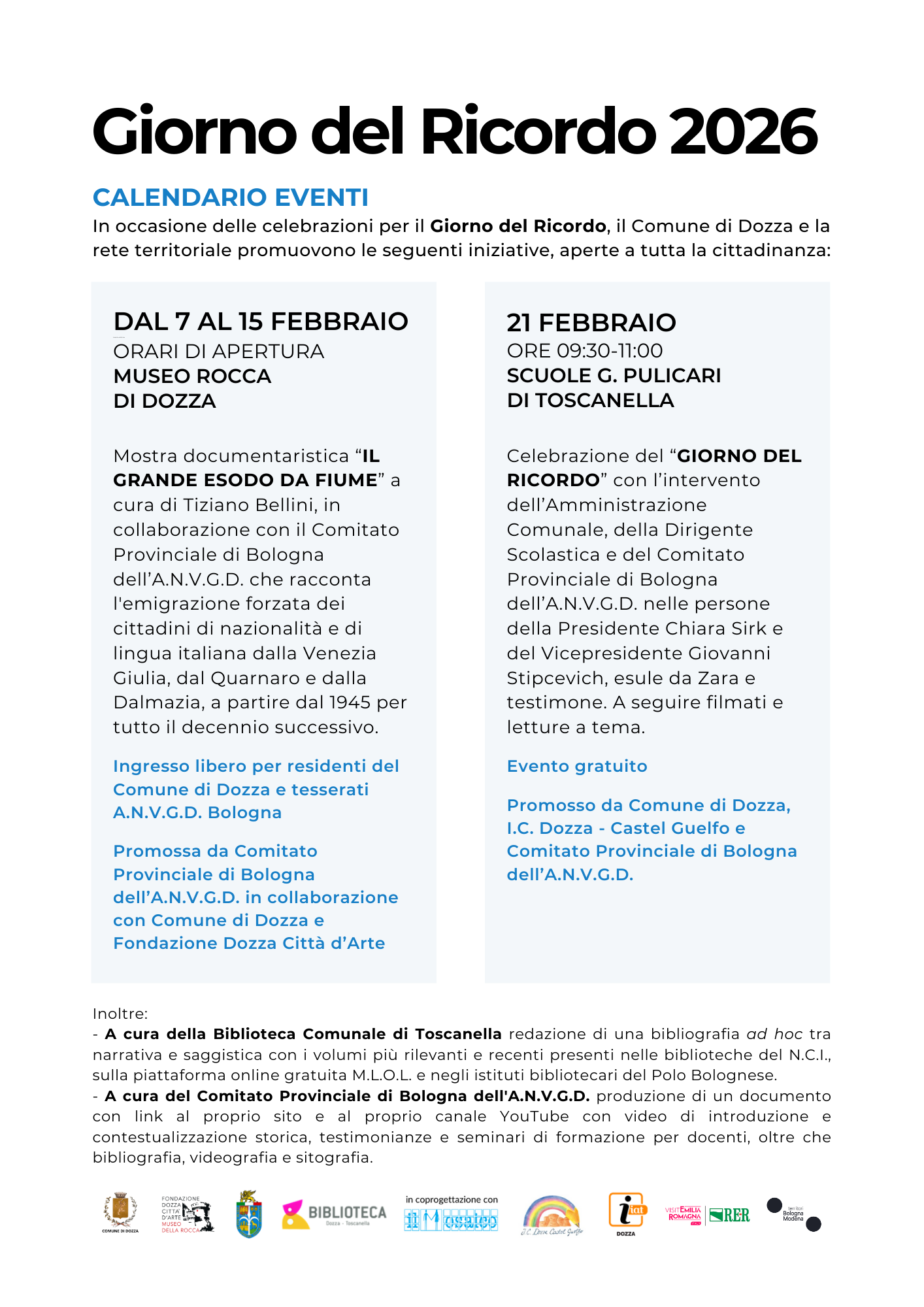 Ecco il cartellone delle iniziative che si terranno a Dozza in occasione del "Giorno del Ricordo"