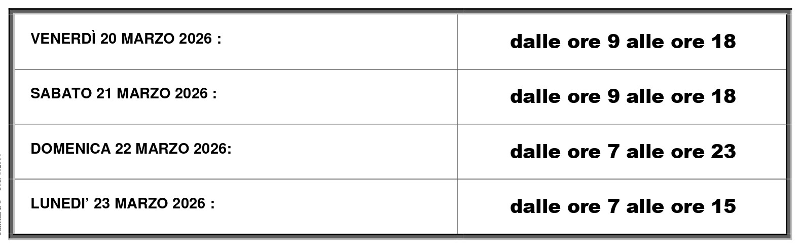 Al fine di consentire il rilascio delle tessere elettorali non consegnate, terminate o dei duplicati delle tessere stesse in caso di deterioramento, smarrimento o furto dell'originale si informa che l'ufficio elettorale resterà aperto nei seguenti giorni e orari: